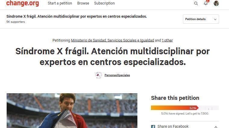 Petition updateSíndrome X frágil. Atención multidisciplinar por expertos en centros especializados.Gracias a vuestro apoyo hoy hemos superado las 5000 firmas..