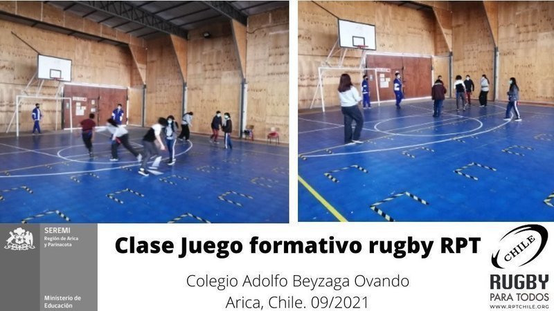 SANTIAGO, CHILE, 15 de Septiembre de 2021. En nombre del equipo de directores de Fundación RPT Chile queremos felicitar a Romina Luza Leyton y Gonzalo Álvaro Rojas Rojas docentes recientemente graduados del curso de capacitación Profesional RPT organizado en coordinación con el apoyo técnico de la SEREMI de Educación de la Región de Arica y Parinacota. Por dar inicio este mes de septiembre las primeras unidades escolares de RUGBY PARA TODOS para los cursos curso de 7° básico, 8° básico, 3° medio y 4° medio del Colegio Adolfo Beyzaga Ovando en la región de Arica. La unidad completa de actividades para cada uno de los cursos es de tres meses y será impartida a los estudiantes (20 mujeres y 30 hombres) en una modalidad de enseñanza híbrida, presencial-remota.