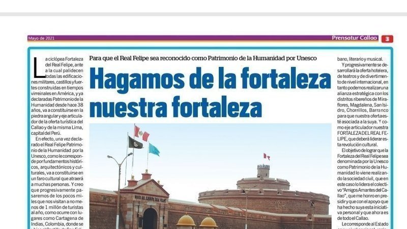 La Fortaleza del Real Felipe declarada Patrimonio de la Humanidad se constituirá en el eje de una Oferta Turística de nivel mundial de carácter Porteño, articulando gastronomía, atractivos arquitectónicos como la Zona Monumental de Chucuito, de La Punta, las Zonas Populares, Islas, distritos y Barrios, Diversión, Música y la natural alegría de su gente. Claro está asegurando la calidad de los servicios con estándares intencionales.