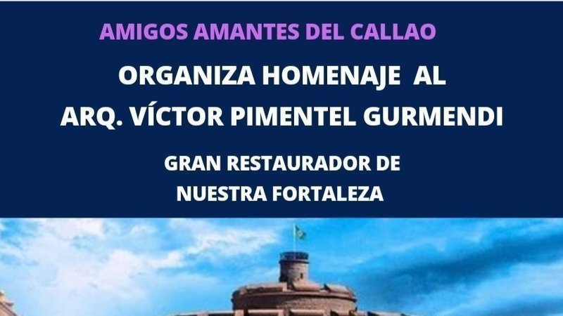 El Colectivo Amigos Amantes del Callao que impulsa la designación de la Fortalezs del Real Felipe como Patrimonio de la Humanidad, realiza éste viernes 12 a las 11 a.m. un Homenaje al Arquitecto Víctor Pimentel Gurmendi por su contribución a la Restauracion Monumental en el país y especialmente con la Restauración realizada en la Fortaleza del Real Felipe en 1971, con ocasión de los 150 años de nuestra independencia, labor que realizará Ad Honorem y que fuera la más amplia restauración realizada en la Fortaleza.