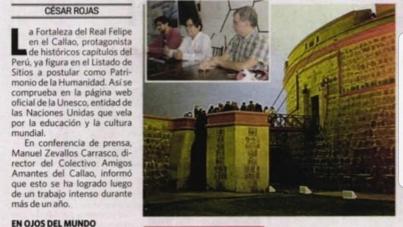 La Prensa Regional y Nacional ha informado jubilosamente la noticia que La Fortaleza del Real Felipe se encuentra ya en el portal de la UNESCO señalandose que por decisión del Perú, se encuentra ya incluida en el Listado De bienes a postular a Patrimonio de la Humanidad. En 1año podrá presentarse el Expediente y de ser aprobado en los plazos previstos podríamos tener la nominación en el 2025.