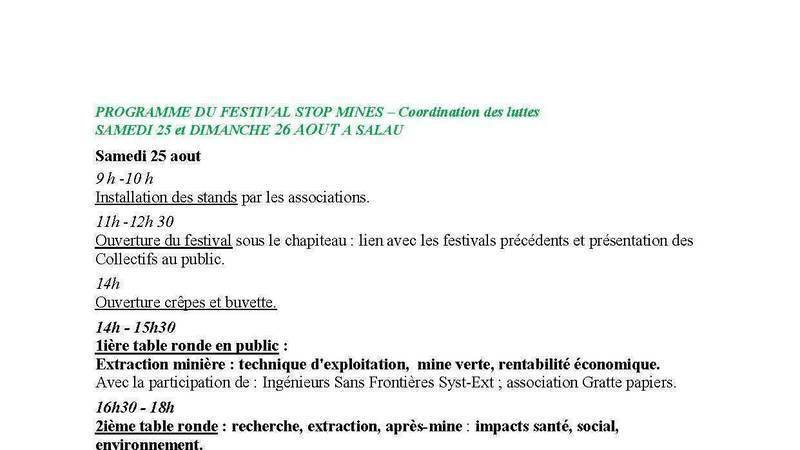 le FESTIVAL STOP MINES qui se déroulera à Salau les 25 et 26 Août 2018