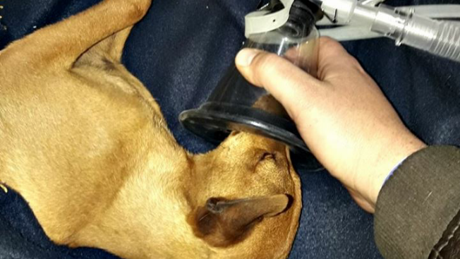 Leben pequeña perrita abandonada en un contenedor al borde de la muerte, en una bolsa de basura cerrada, con un grave cuadro de hipotermia, espasmos, deshidratación y falta de oxígeno que le ha causado daños neurológicos con pronóstico reservado.
