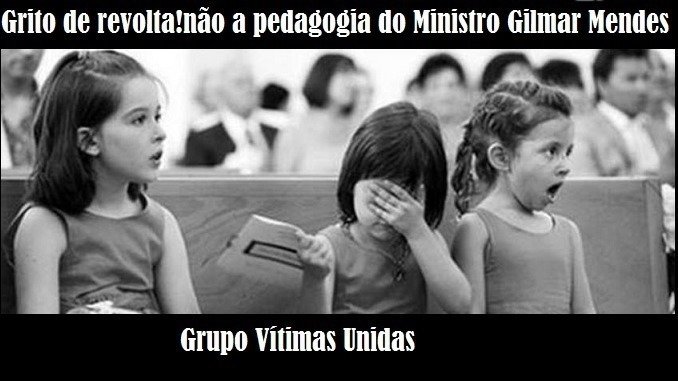 Agradecemos aos cidadãos que estão dando uma lição pedagógica ao Poder judiciário. Comentários indignados neste Grito de revolta contra ato judicial.-Erro é erro e não pode ser lição pedagógica ao coletivo .Fato irrefutável ,o ministro Gilmar Mendes cometeu um grave erro ao soltar o Monstro estuprador Roger Abdelmassih , e não merece benefícios de ação de danos morais por ter sido e ser criticado por seu ato .Somos todos contra violências .Estamos protegendo nossas famílias por intermédio deste abaixo assinado . Compartilhem por favor, já estamos neste momento com 41.200 honras para entregar ao judiciário .Chegaremos a 50..100, mil em breve e vamos entregar ao supremo.Obrigada , em meu Vana Lopes e Grupo Vitimas Unidas em nome da moral compartilhada por famílias honradas .