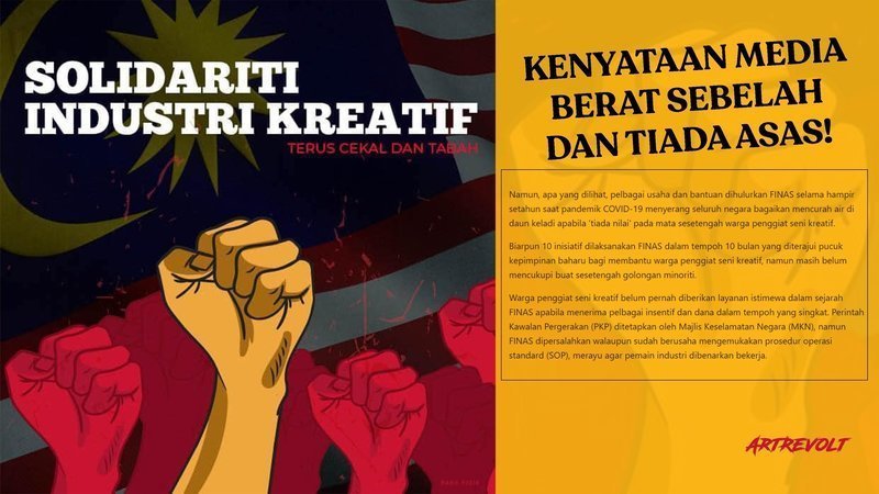 Kami juga ingin menyentuh kenyataan media dari wartawan media yang berat sebelah dan tiada struktur kenyataan yang kuat apabila secara semberono menulis dan menyatakan warga kerja industri kreatif sebagai tidak menghargai inisiatif yang dilakukan Finas. Ada 10 inisiatif yang dinyatakan.