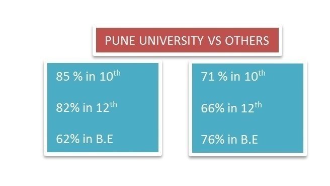 Thousands of students like me, who are graduating from Pune University is suffering because of the low percentage they are able to score. The cutoff percentage for PSUs, Indian Navy and Airforce are 65% and 70% respectively, which is a cake walk for many of my friends studying in different universities across India . But, getting a 65% & 70% is a rare observation in Pune University. This can be verified if some analysis is done on the results from various universities and the number of students falling in criteria greater than 60% is numbered .