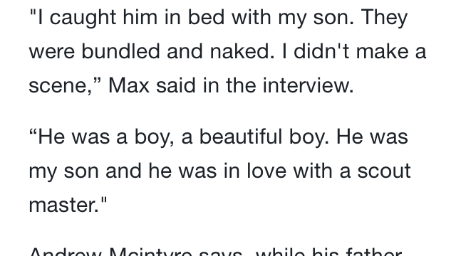 See this is not what fathers do when they catch an adult male molesting their son who’s a child , the whole comment is so twisted and warped .