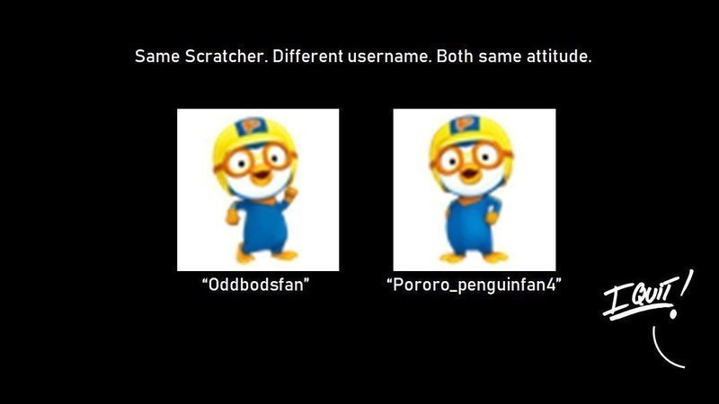 He's one of the scratcher who was irresponsible for blocking TheSpiderFoundation & Deleted ArmstrongJordon by the Scratch Team, making poorly maded Vector sprites & FAKE "Vector" sprites, remixing various projects, making poorly made RANTS & Salute, Hating Home Alone movies, Criticizing joshieman2008 & robintitan, poorly done English / Engrish grammars, Remixing the same damn Leekspin projects over 168 times, lying about his learning and being a kid who loves to code, posting projects with blood 3 times, having a fake "apology" to LogoFan2016, making projects out of me, joshieman2008, robbrasil & SuperKot7, changing the profile image as a sockpuppetry & lastly, his username "Oddbodsfan" and "Pororo_penguinfan4" are absolutely nothing to do with the shows. It truly doesn't! Where's the characters from the those series? Where's anything related?