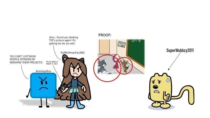 I thought his stealing pictures of mine days are over but he DID it again! But this time, he stole my picture from March 9, 2021! It's getting out of hands, mister. eggmanE12 knows that is some bad art. (ewww that is some bad art.) and yes. It's a awful background removal of my picture. BinkSaysBoo also know that you (SuperWubzby2011 / Jyde Bondal) shouldn't bash other scratchers' opinions because if you bash them, you gonna get a warning from Scratch Team. Lastly, He (Jyde) share his own real name on his About Me section on his profile page? FanaticReturns knows that For safety reasons, don't give out any information that could be used for private communication, in person or online. This includes sharing real last names, phone numbers, addresses, hometowns, school names, email addresses, usernames or links to social media sites, video chatting applications, or websites with private chat functionality. as SuperWubbzy2011 is going down anytime.