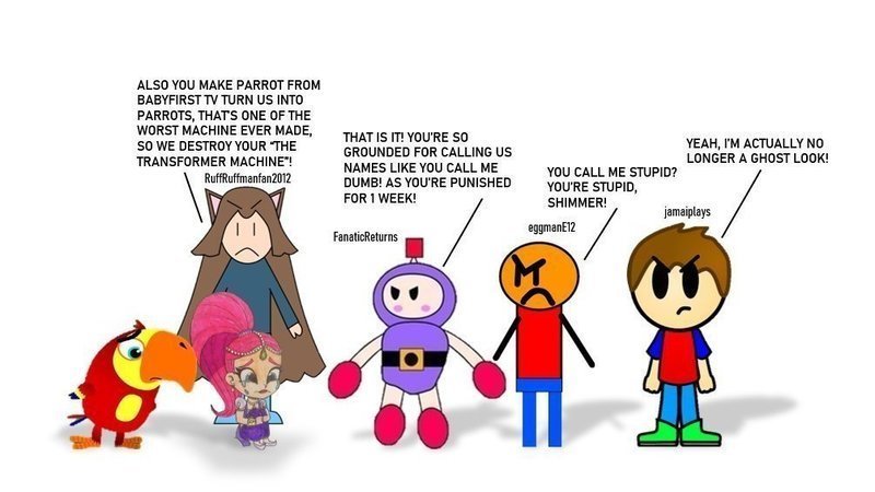 - Shimmer Rant on ban SuperWubbzy2011 in Shimmer's giant voice (She never voice like that in the show! also You (Jyde) still saying people names like Gummyb3r123 as weak, eggmanE12 as very stupid, FanaticReturns as so dumb. and saying No one cares about jamaiplays, THAT. WAS. SO. VERY. RUDE. TO. SCRATCHERS! UPDATE - 7 / 8/ 2021 : Thankfully, this project was finally removed.)