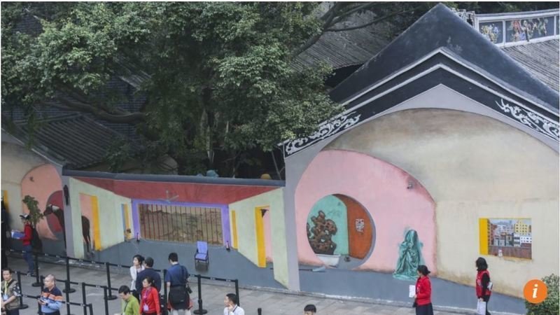 L’artiste de 34 ans avait passé plus de quinze jours à peindre son œuvre sur le mur d’enceinte d’un temple situé en lisière de la ville où se tient l’exposition, la cité historique de Nantou .
