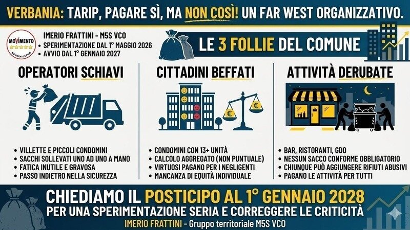 Dal 1° maggio partirà a Verbania la sperimentazione della “tariffa puntuale” (Tarip), un sistema che dal 1° gennaio 2027 introdurrà il principio “paghi per quanto produci”.