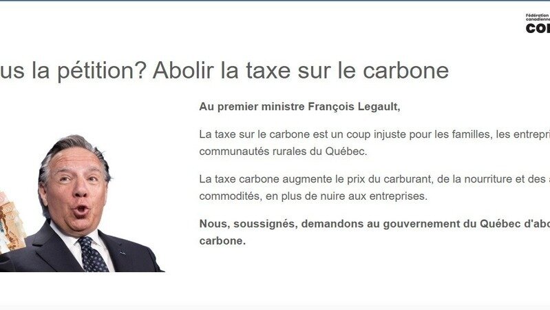 "Le Québec est maintenant la seule province avec une taxe carbone, et voici votre chance de faire regretter à François Legault de la maintenir.