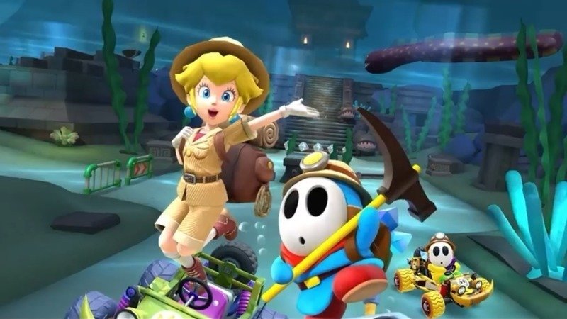 In Pirahna Plant Cove, racers will traverse & navigate through omninous sunken underwater ruins, with occassional routes taking place on parts of the ruins that are above the ocean surface, as well as a nearby jungle island; all while avoiding treacherous enemies like underwater Thwomps & island-inhabiting Pirahna Plants, and seeing Cheep-Cheeps, Bulbers, and Maw-Rays / Unagis swimming around or settling still the ocean without them interfering with the racers.