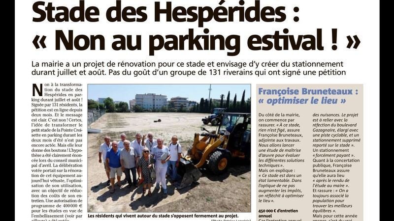 署名活動についてのお知らせNON A LA TRANSFORMATION DU STADE DES HESPERIDES EN PARKING PENDANT JUILLET ET AOUTInformer vos voisins