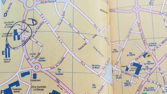 Voici un plan qui vous situe le Départ (D) de la Manifestation qui débute 14h 30 (devant la Communauté de communes de Noirmoutier)