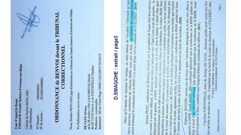 Malgré cela, le délit de fuite n'a pas été retenu par les juges du TGI d'Avesnes-sur-Helpe... Pourquoi ? Personne ne l'explique !