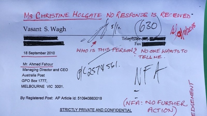 1. The photo in this update dated 10 November 2018 is the documentary evidence that my extremely important letter to the former Managing Director and CEO of Australia Post Mr Ahmed Fahour is marked NFA (No Further Action). Despite asking for the name of the person that initialed this front page, with some numbers, numerous times to many senior people in Australia Post no response was ever provided. I was provided this front page under the FOI Act by the FOI Official that worked for another government agency.