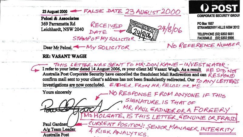 After months of trying to get answers, no one has responded to my simple question about the authenticity of the signature of Mr Paul Gardner who is in my view currently working as Senior Manager Integrity & Risk Analytics at Australia Post’s Headquarters in Melbourne.