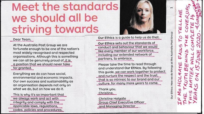 The image posted today is what is publicly available document of Australia Post called “Our Ethics”.
