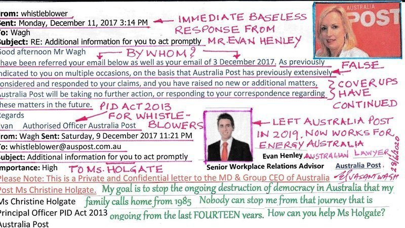Please read my following update posted in the past about Mr Evan Henley accessing my emails to Ms Holgate despite leaving Australia Post job.