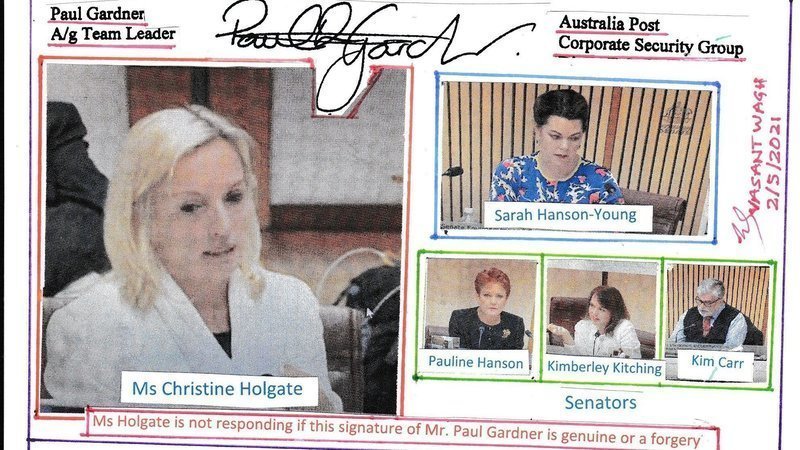 My solicitor received a baseless letter with a false date and no reference number with a suspected forged signature of Mr Paul Gardner in response to his letter to the investigator Mr Don Kane of Australia Post CSG at the time. Ms Holgate does not even want to tell me if that signature is genuine one or it is a forgery. What is she trying to hide? If that signature is a forgery, then Ms Holgate is allegedly covering up crimes. Why is she silent on the unacceptable conduct of numerous Australia Post officials? Who is telling her to cover up corruption and crimes? Who are her advisors? Does she have a legal advice to remain silent on corruption and crimes cover ups? There are many questions that she is failing to answer.
