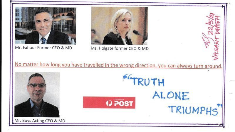 The following is my Petition to Ms Christine Holgate who resigned on 2 November 2020. As you have now been appointed in the acting role in her position, my petition and most of the updates are provided below. The links are provided to the updates to make it easy for you to pick and choose the update that you want to look at as a priority. I request you to read the entire material because that will give you a fair idea of all the wrongdoings of number of people inside and also outside of Australia Post.