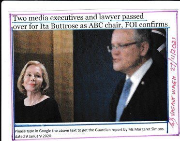 Mr. Morrison appointed Ms Buttrose which please remember. The time will come to investigate her and question her in the Parliament about her blaming the government of interfering with the independence of ABC.