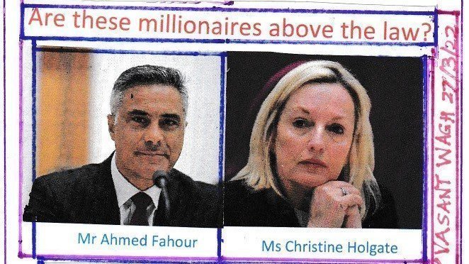 Are the millionaires in our country above the law? Where are our elected representatives gone? Why are they all silent? Many gave voice to Ms Holgate but NOT to me. This is documented. What is their job when it comes to raising such matters in the Parliament?