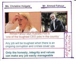 Today, I am sharing my letter I wrote to the Senior Australia Post officials. They all have left Australia Post jobs after allegedly covering up the truth behind my identity theft initiated by other Australia Post officials. These senior officials allegedly violated even the very basic rules of Australia Post where they were expected to be moral, ethical, honest and law abiding. They all worked under the leaderships of Ms Holgate and Mr Fahour. Few of them were in the inner circle of both Mr Fahour and Ms Holgate.