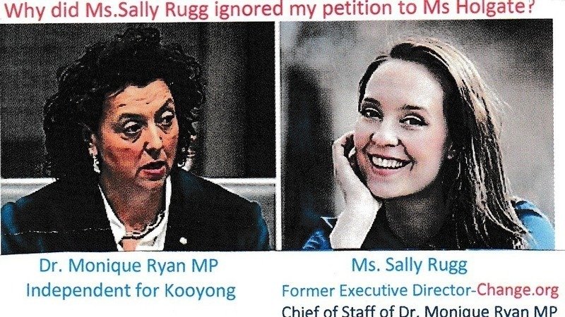 I request Dr. Monique Ryan to look at my fight for justice very closely and give me a voice. It is almost four months and the following email has not received any response. Dr. Ryan has a golden opportunity to make a change. I am here to help her to raise this matter in the Parliament as it is my goal to make Australia corruption free no matter how long it takes and no matter how many brick walls need to be demolished to reach that goal.