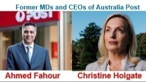 Both of them including numerous other past and present employees of Australia Post have failed in their responsibilities, failed to tell us the truth, failed to act on documented cover ups and failed to show their moral and ethical values as required by their own rules of employment with Australia Post. Many have allegedly breached the laws of our country is my view and that includes Ms Holgate and Mr Fahour. Both of them had TEN long years between them to address the corruption and cover ups but they failed and then resigned. No one in our country should accept this gross misconduct of these past MDs and CEOs of Australia Post.