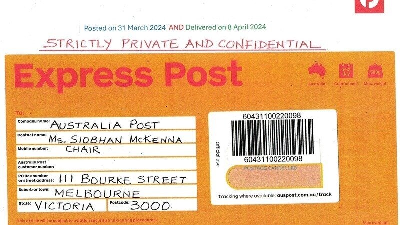 I wrote to her for the first time on 31 March 2024 after the failures of Mr. Paul Graham to respond to my letters. He is the Managing Director and Group CEO of Australia Post. My very serious concerns about the corruption and cover ups that were initiated by Australia Post officials back in June 2006 and continued to this day were brought to the attention of Mr. Graham. My letters were successfully delivered to Australia Post headquarters.