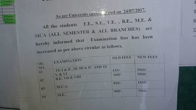 Mumbai university affliated Engineering colleges in mumbai as well as in suburbs of mumbai most of the students are from middle class they can not afford such a sudden rise in examination fees (435 /- previous examination fees to 1060/- newly increased examination fees for a single semester and it should be payed in given period of time). Please help us to bring this newly increased examination fees to it's proper examination fees.