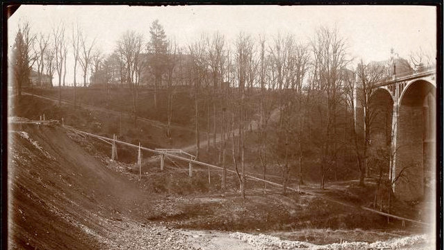 Comme le montre la photo du début du siècle passé prise en hiver, ces chemins peuvent être classifiés sans exagération de chemins historiques témoins d'une vallé du Flon pas encore comblée.
