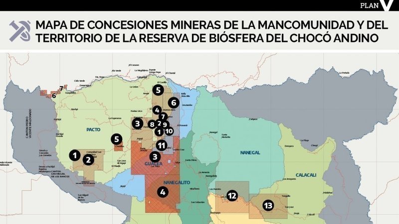 La Mancomunidad del Chocó Andino está conformada por las parroquias de Pacto, Calacalí, Nono, Nanegal, Nanegalito y Gualea, que forman parte del cantón Quito, y ya presentaron ante la Corte Constitucional (CC) una solicitud de consulta popular para prohibir la actividad minera en el Distrito Metropolitano de Quito.