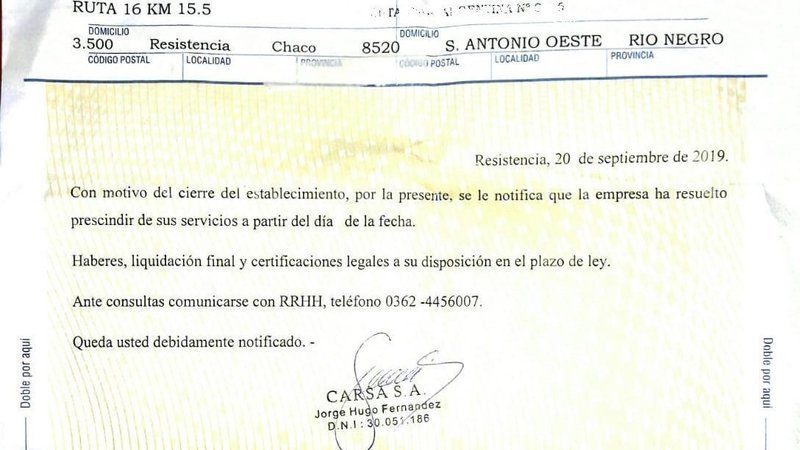 Musimundo Carsa dejó más de 300 empleados en la calle desde el 20 de septiembre 2019 en todo el país.- Recibieron el telegrama de despido, en el cual la empresa notifica que prescinde de sus servicios a partir de ese día. Que los Haberes, liquidación final y certificaciones legales estarían a su disposición en plazo de ley, cuestión tal que a la fecha 20 de octubre no ha ocurrido . .Cada vez que un ex-empleado llama a Recursos Humanos no le responden o simplemente les dicen "que no hay novedad"...