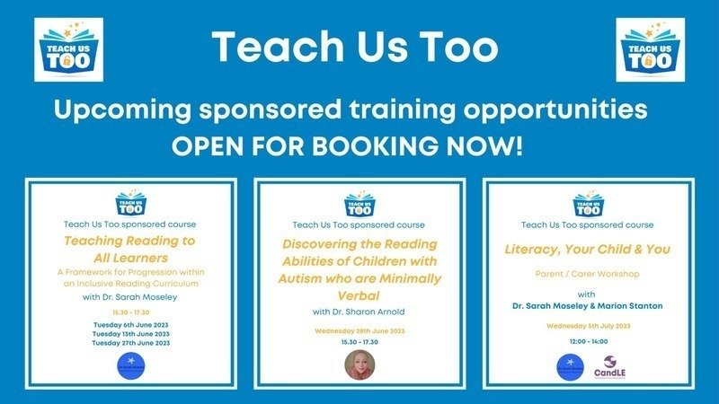 Working at influencing policy is essential, but so is equipping and enabling professionals to teach all pupils literacy. The charity I founded, Teach Us Too, sponsor a number of courses throughout the year. There are 3 free opportunities coming up in the next few months: Teaching Reading to all Learners with Dr Sarah Moseley; Discovering the Reading Abilities of Children with Autism who are Minimally Verbal with Dr Sharon Arnold; and Literacy, Your Child and You (a parent / carer workshop) with Dr Sarah Moseley and Marion Stanton. For more information and how to sign up see here: https://www.teachustoo.org.uk/tut-sponsored-training-opportunities