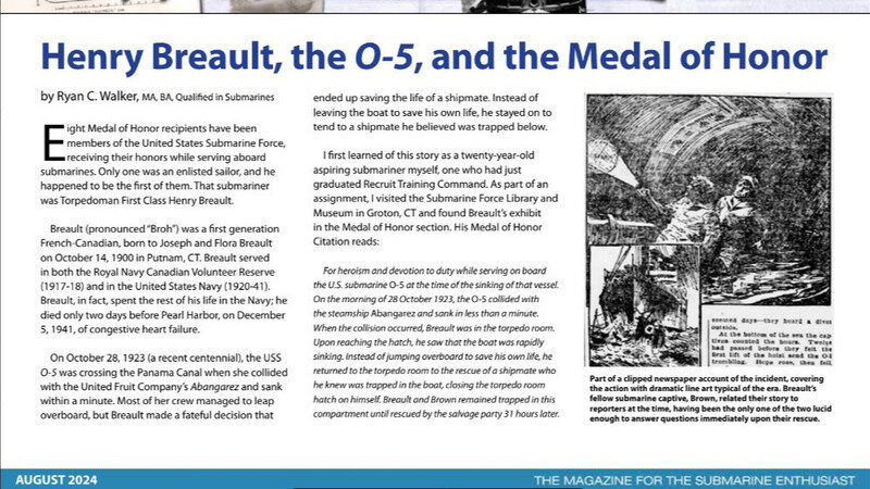 A bit late on this, but I'm happy to report the August edition of the SubCommittee Review had an article on Henry Breault! March 8, 2024 was the centennial of Breault's award, meaning 2024 is a special year for Breault's memory!