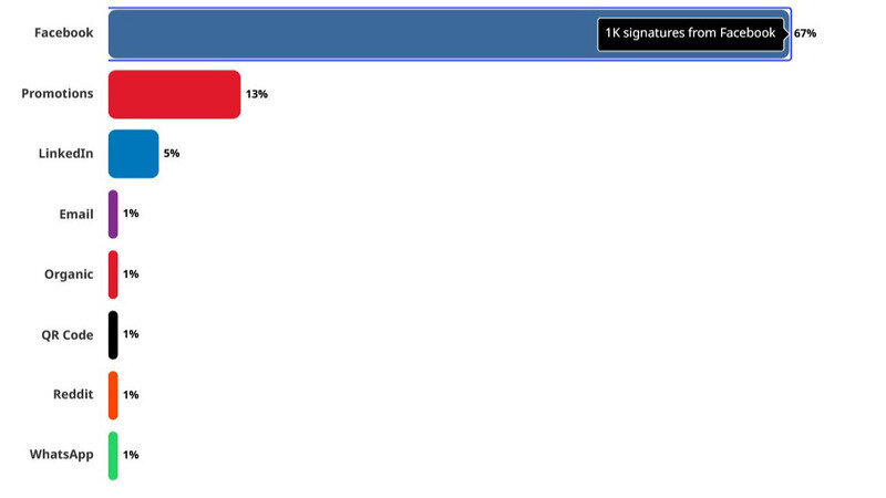 The next highest at 13% from Promotions, the promoters who were gracious enough to donate money to ensure people see the petition. Only about 20% of the purchased views have been racked up, so there is plenty of time for this to increase.