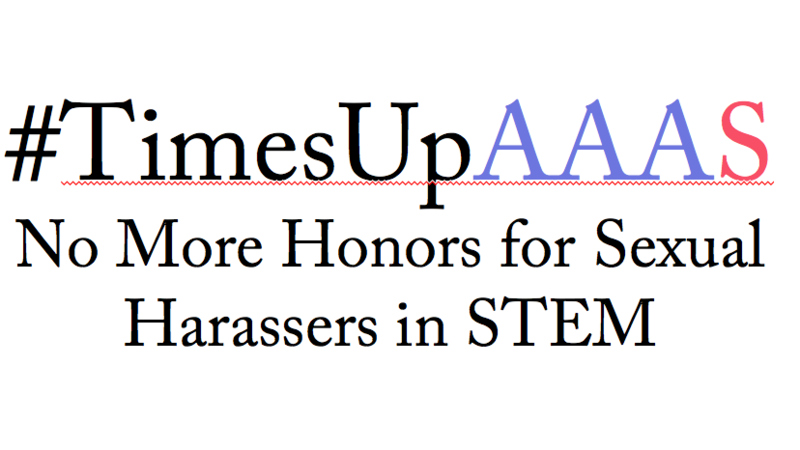 Today we released a petition calling on American Association for the Advancement of Science to stop giving awards to men who have abused women. AAAS bestows its highest privilege to elected Fellows whose "meritorious efforts to advance science or its applications".