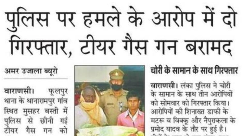 News about incident published in leading Hindi newspaper Amar Ujala on page number 8 with title "two accused arrested and recovered police tear gun".