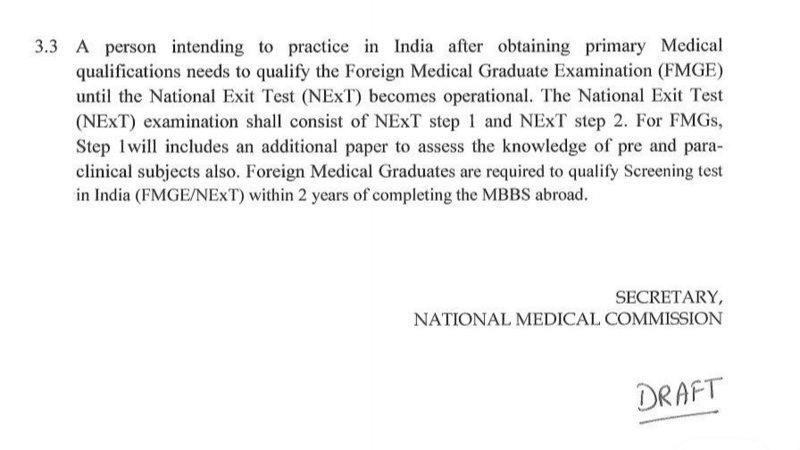 As a FOREIGN MEDICAL STUDENT we are not okay with the new draft proposed by National Medical Council Of India which states that Foreign Medical Students will not be allowed to change University,we can write NEXT exam only within 2 years of Graduation and have to pass an additional screening test along with Next Step 1 which will check our pre and para clinical knowledge.