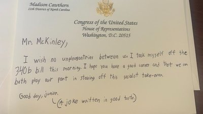 North Carolina US House Representative Madison Cawthorn (R-11) lacks basic reading, writing, and arithmetic skills. He frequently and publicly misquotes historical figures and misrepresents historical events. Even his signature is an illustration of his abysmal failure to learn the basic cursive script that most Americans master by third grade. When he’s not posing with long rifles or filming himself pummeling already dead saplings as PR stunts, he’s praising the lavish lifestyles of methed-up genocidal fascist dictators like Adolf Hitler.