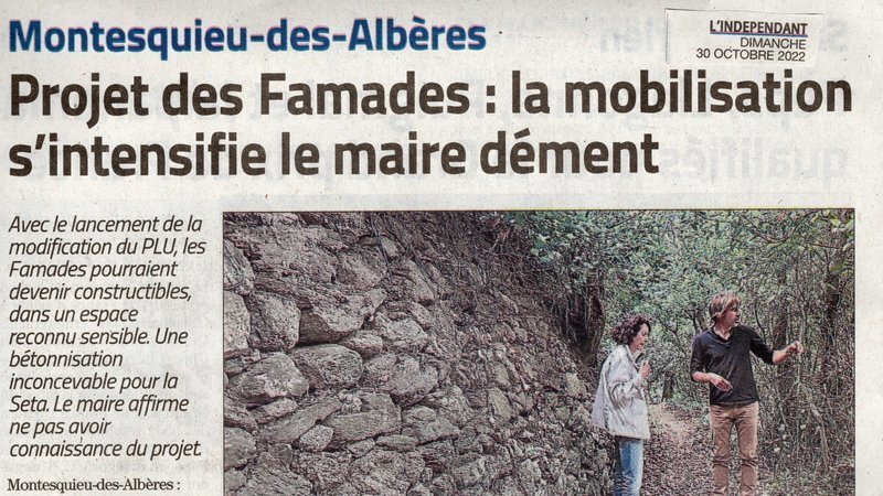 Petition updateNe laissons pas bétonner le massif des Albères à Montesquieu !L'INDEPENDANT : Projet des Famades : la mobilisation s'intensifie la maire dément