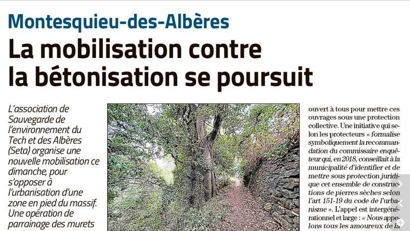 Actualización de la peticiónNe laissons pas bétonner le massif des Albères à Montesquieu !ARTICLE SUR L'INDEPENDANT DE SAMEDI 10 DECEMBRE