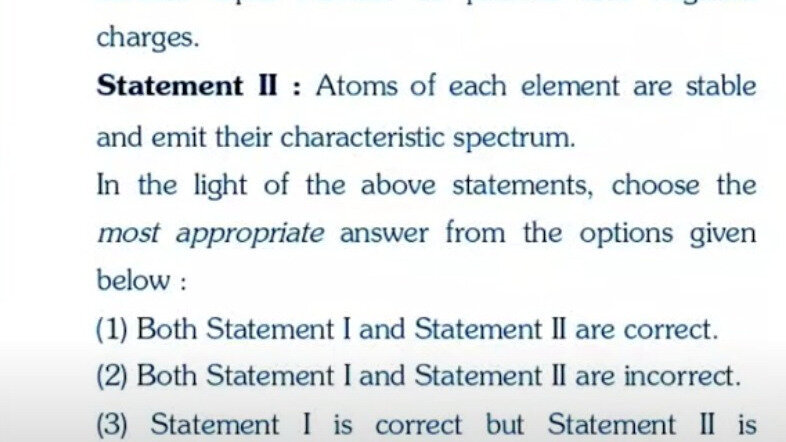 The physics section of NEET UG 2024 has experienced controversy due to a question which required the evaluation of two statements regarding atoms. The first statement, concerning the electrical neutrality of atoms with equal numbers of protons and electrons, is universally accepted as correct. However, the second statement, which asserts that atoms are stable and emit characteristic spectra, has become a point of contention. Discrepancies arise between the old and new textbooks of NCERT, with the former affirming the statement's correctness while the latter indicates its inaccuracy.
