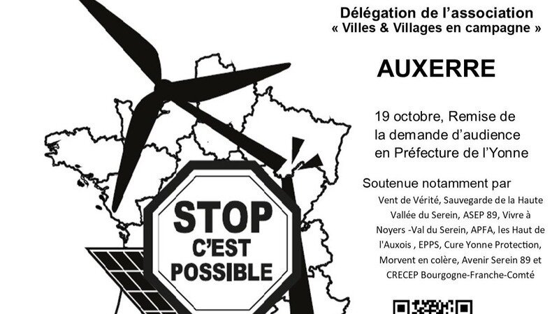 La délégation de l'Association " Villes et Villages en Campagne" remettra le 19 Octobre une demande d'audience en Préfecture de l'Yonne avec le soutien de plus de 10 associations de l'Yonne et du Collectif Régional d’Experts et de Citoyens pour l’Environnement et le Patrimoine (CRECEP) en Bourgogne Franche Comté