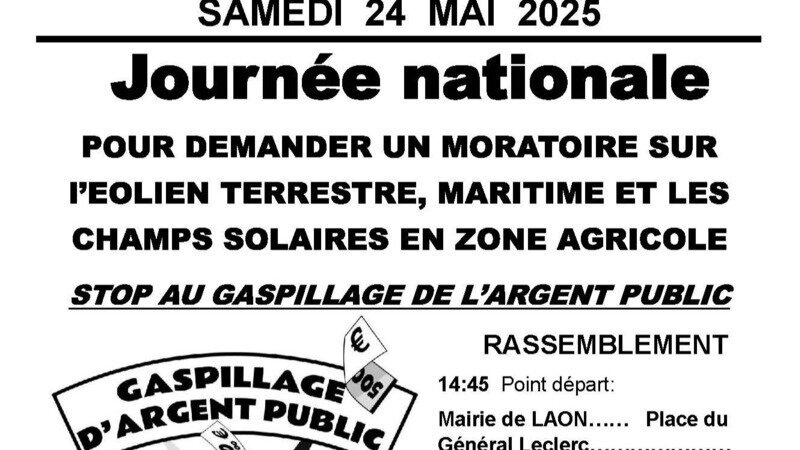 le 24 mai à 14h45 devant la Mairie de LAON pour révéler les vérités cachées des énergies intermittentes qui détruisent notre cadre de vie et notre économie :