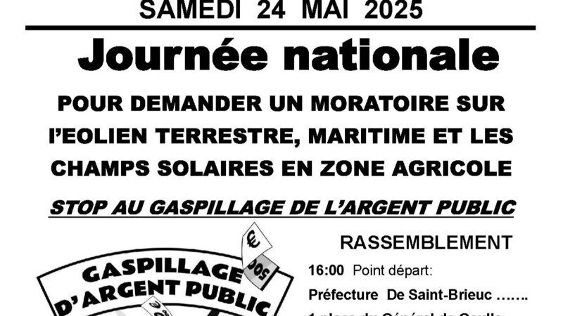 Kampanya güncellemesiNEMOURS 13 novembre 18h00 : Venez découvrir les raisons du prix de l'électricité24 mai16h00 :Préfecture de Saint-Brieuc Moratoire pour éolien terrestre, maritime et champs solaires